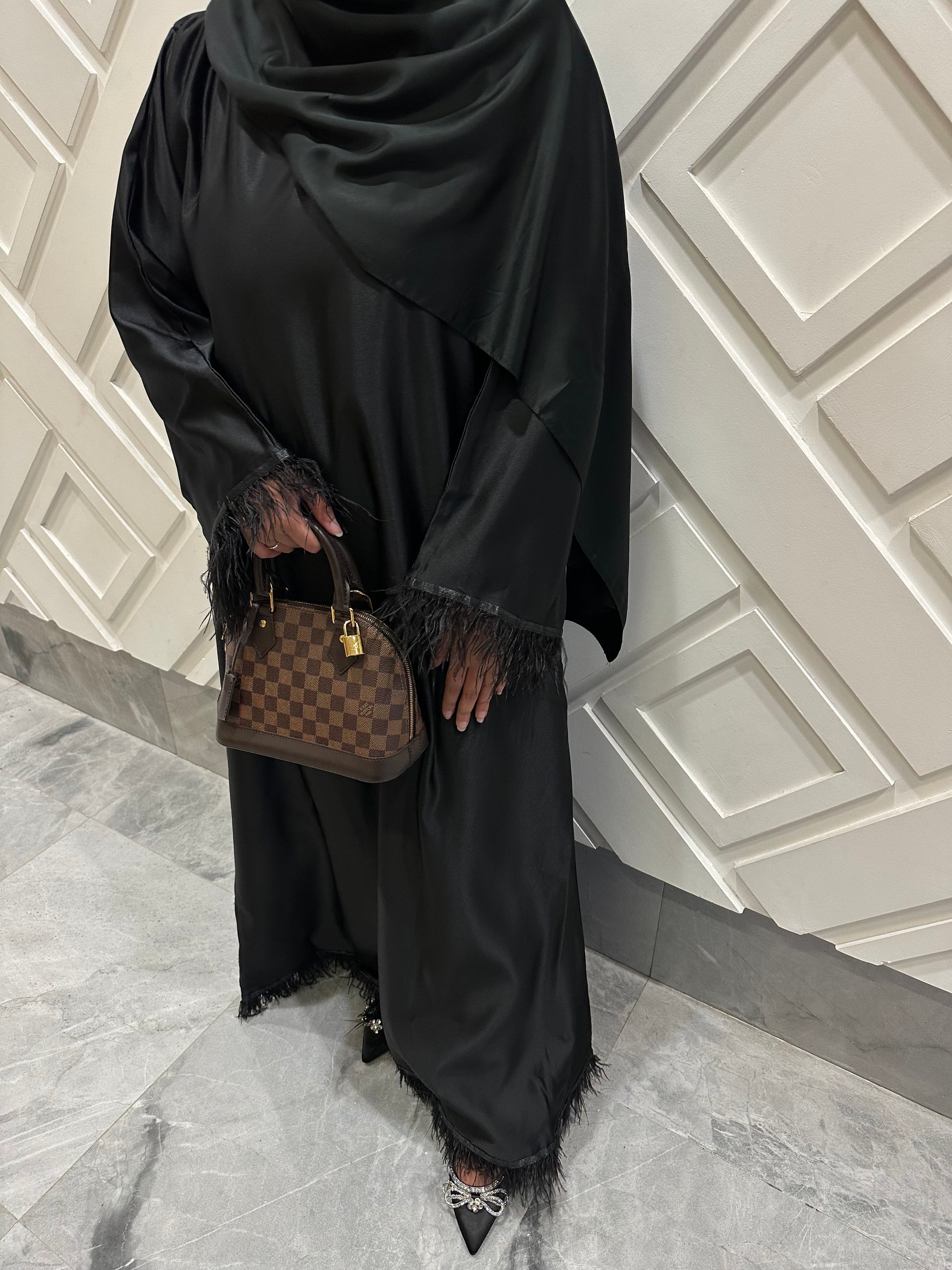 Sublimez votre style avec cette abaya feather confectionnée en satin premium, le même tissu délicat utilisé pour les robes de mariée. Son éclat raffiné et sa fluidité offrent une silhouette élégante et intemporelle, parfaite pour les grandes occasions ou pour un look chic au quotidien.